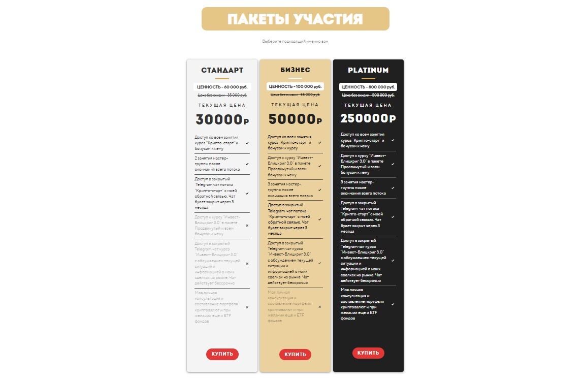 Выбери подходящий пакет участия.